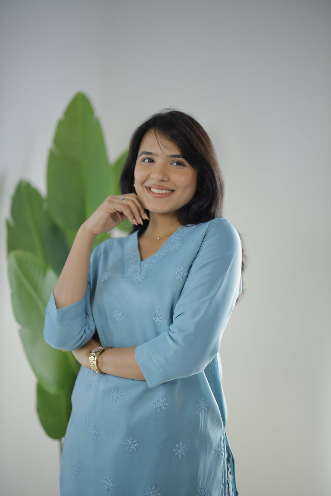 Fabric: Lightweight and breathable fabric for all-day comfort. Color: Pastel blueKurta: Pastel blue kurta with delicate...
