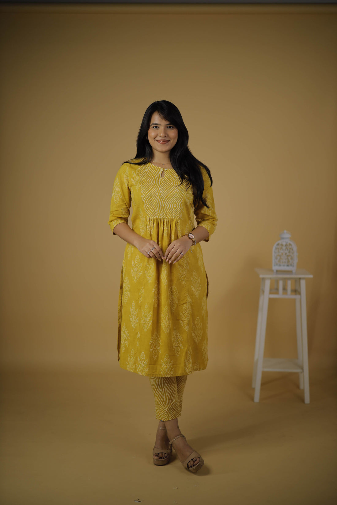 Fabric: Crafted from high-quality cotton, ensuring breathability and comfort Color: Bright yellow Kurta: Bright yellow...