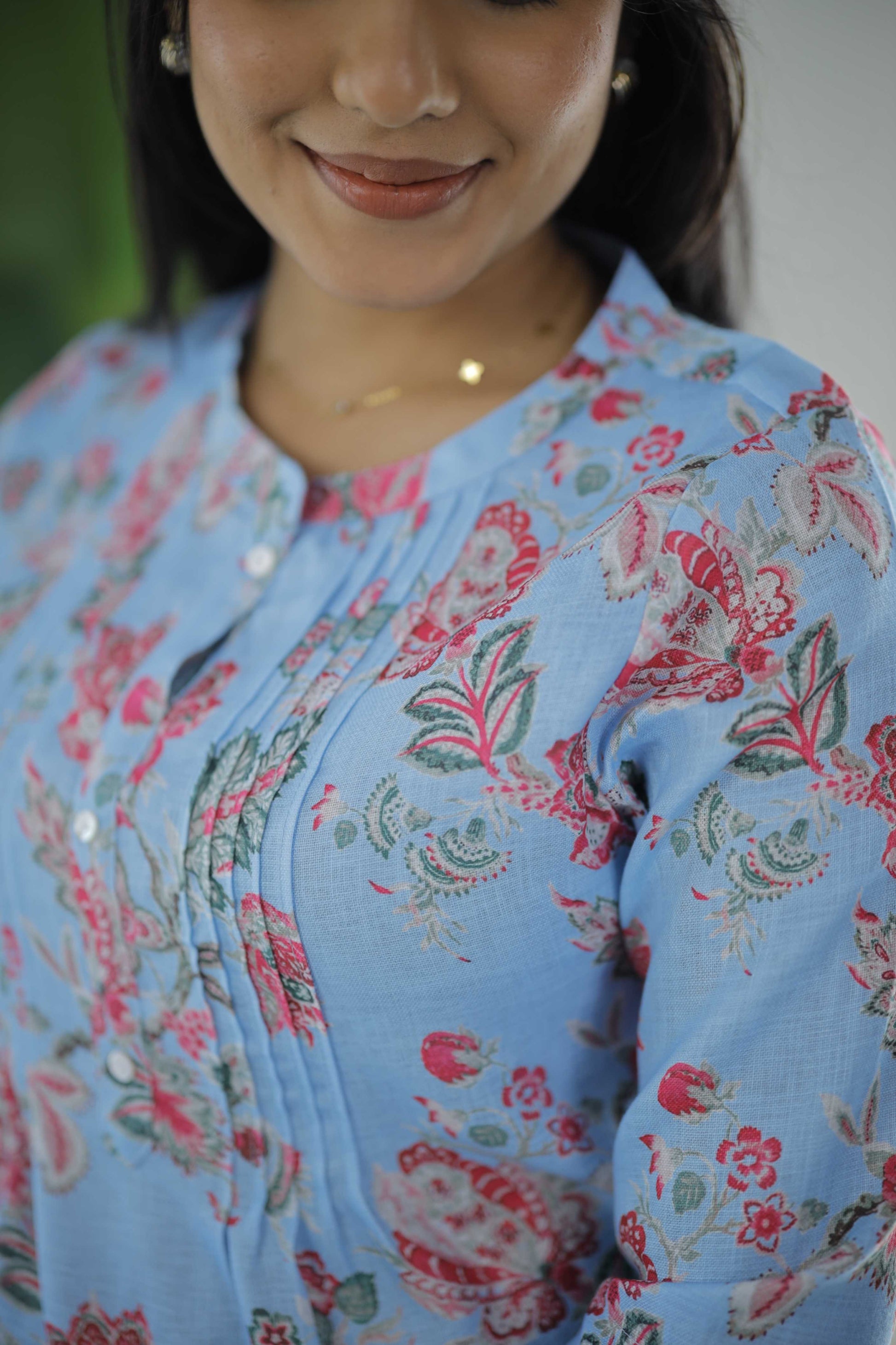 Kurta: Features a refreshing floral prints in vibrant tones for a cheerful and stylish look.