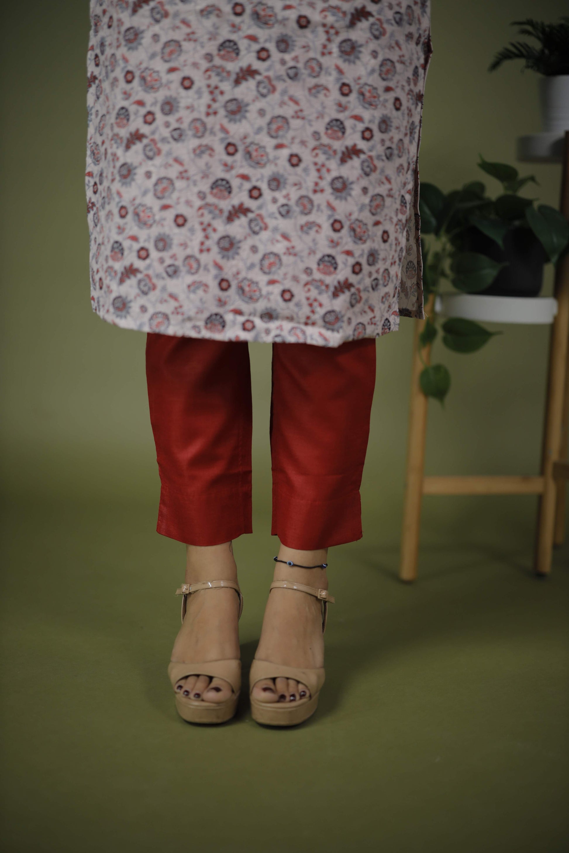 Kurta: Three-quarter sleeves with printed cuffs.